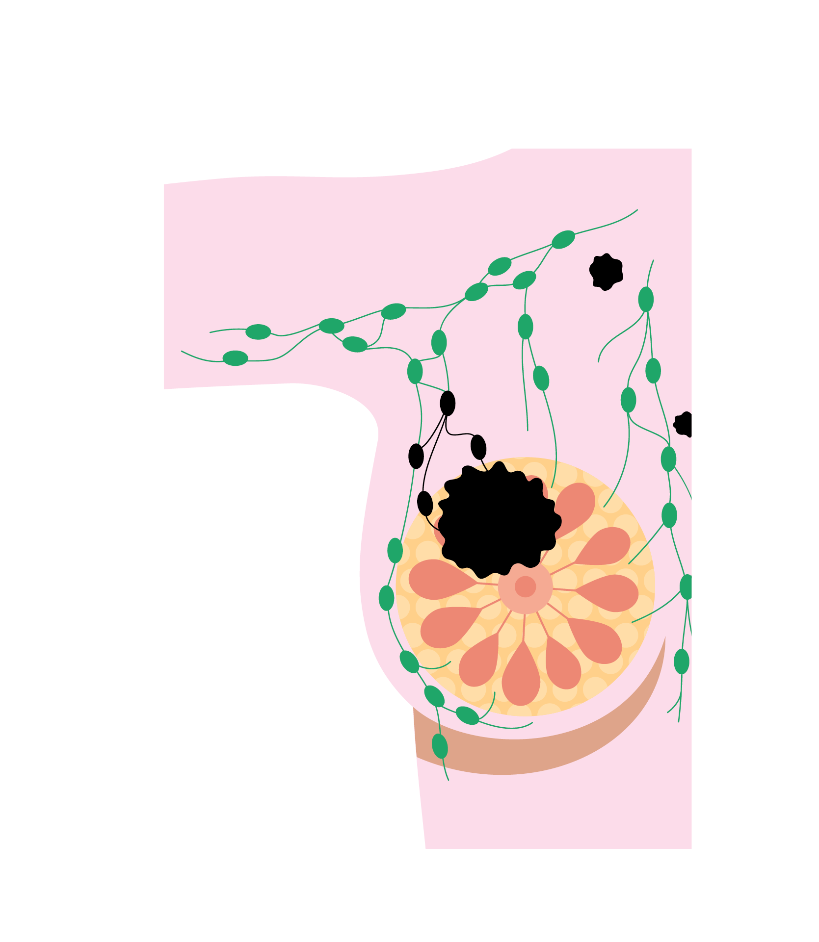 The tumour may be larger than stage 2 and may have spread to lymph nodes, or tissue around the breast.