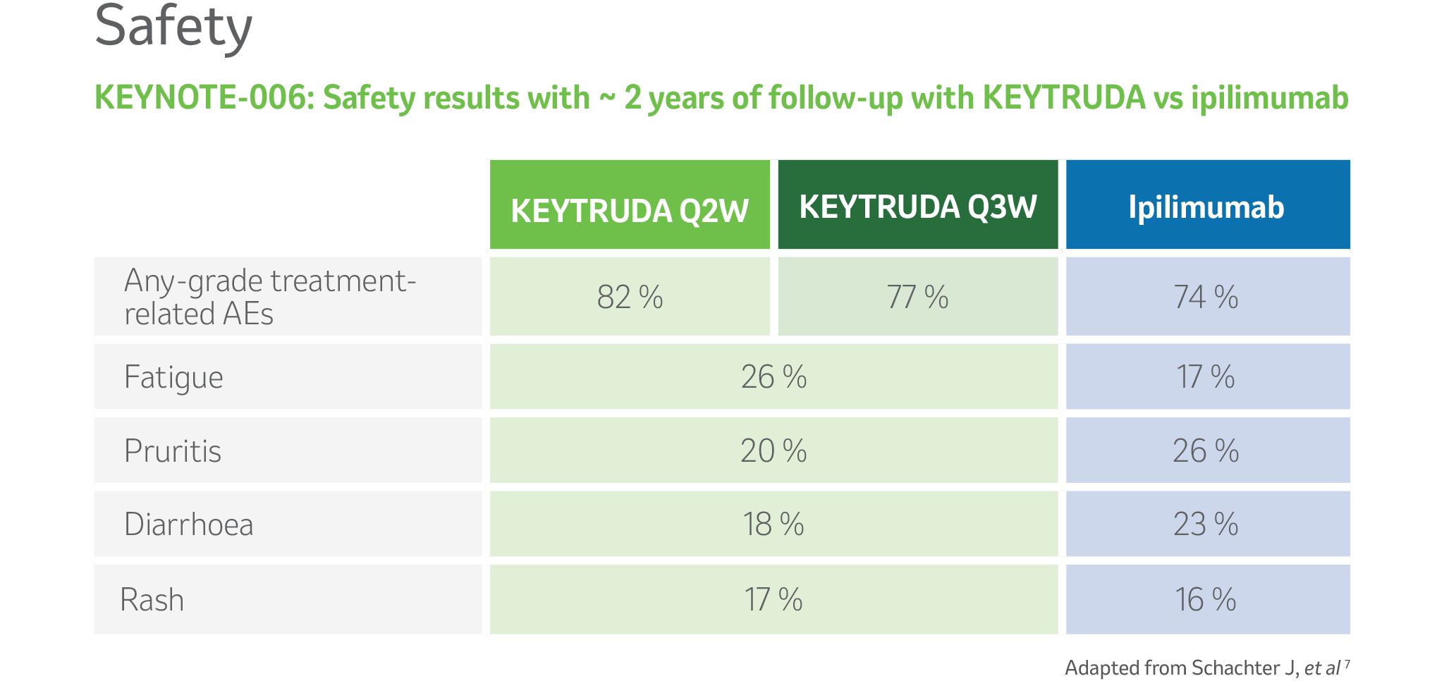 - Schachter J, Ribas A, Long GV, et al. Pembrolizumab versus ipilimumab for advanced melanoma: final overall survival results of a multicentre, randomised, open-label phase 3 study (KEYNOTE-006). Lancet 2017;390:1853–1862.